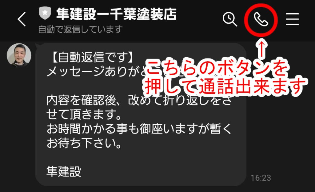 公式LINEに友達登録出来たら通話ボタンから音声通話ができます。